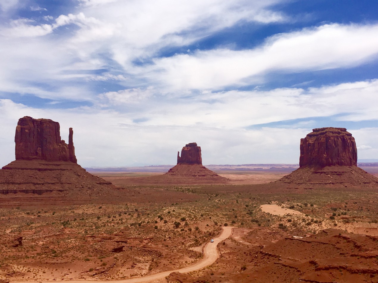 Twee uur later veranderd het landschap en zien we Mesa’s, Buttes en Spires. De grond is hier roodbruin en alles is zand, een echte woestijn dus. Hoe dichter we bij de ingang komen hoe indrukwekkender. We dachten dat het leuk was om alleen ‘het Western plaatje’ te zien, maar het is allemaal mooi. We blijven nog even.